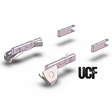 We have reinforced all of the front extension intersections with 1/4" plate to double reinforce the seams and have included a new set of front spring hangers. We have also chosen to reinforce the rear side of the front extension to the factory gooseneck hitch box to keep everything square and strong under the most demanding loads. The total weight of this kit is approximately 145 lbs.