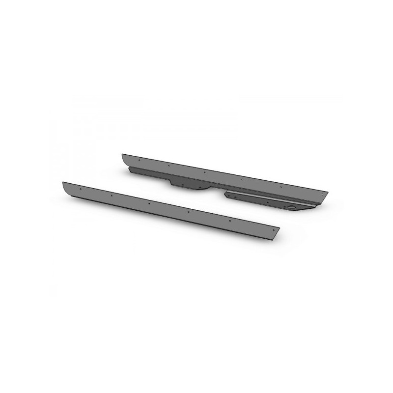 These rocker guards extend rearward to the wheel opening. They can be used with factory flares or on Jeeps with the flares removed. The front edge is profiled to be compatible with most factory flares or most aftermarket tube fenders.